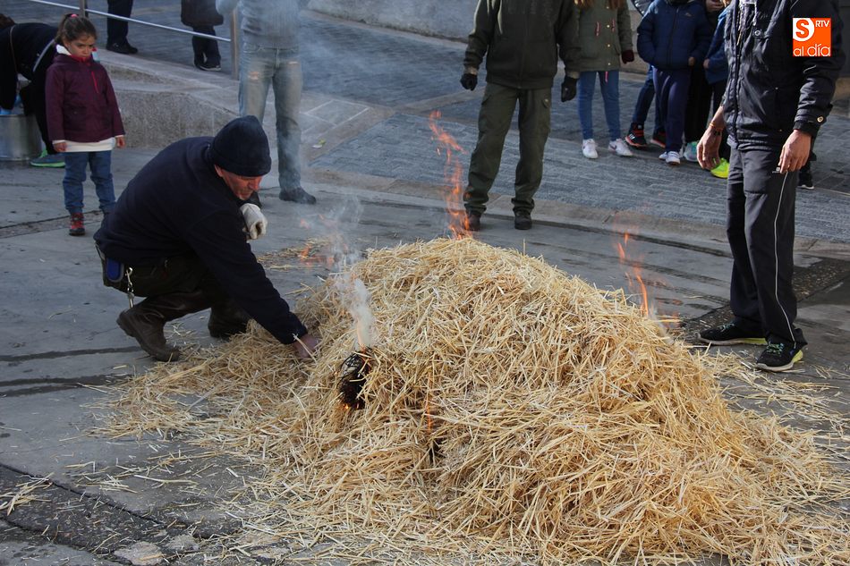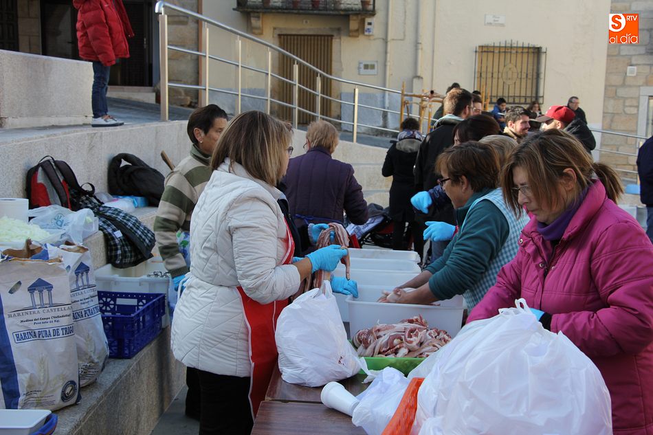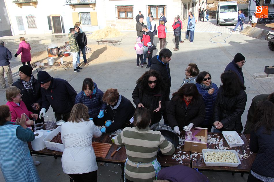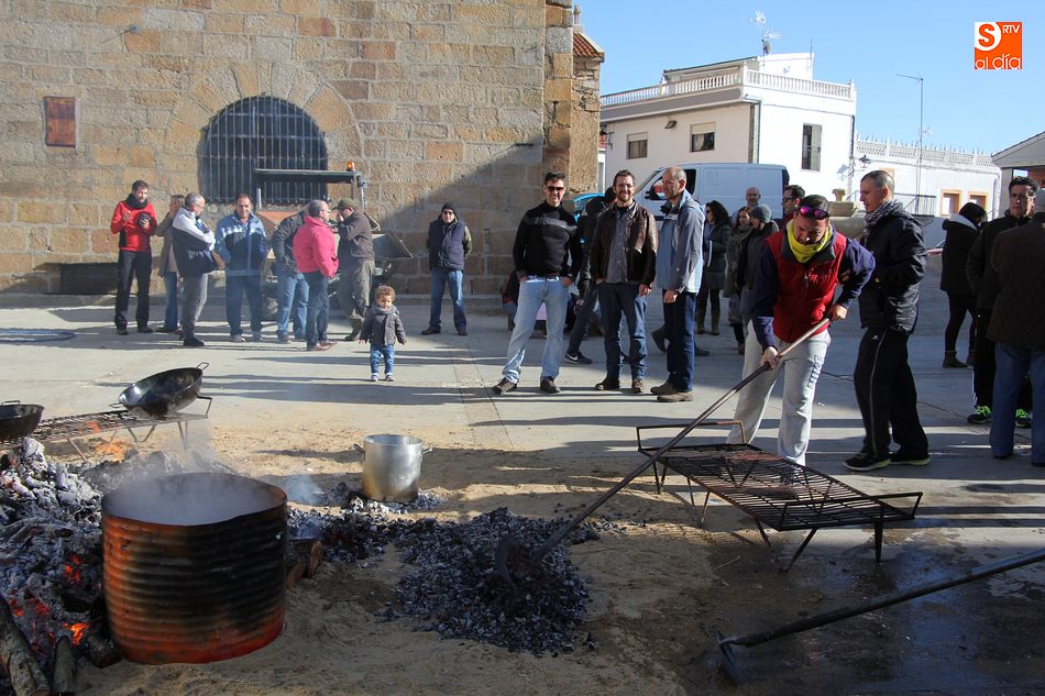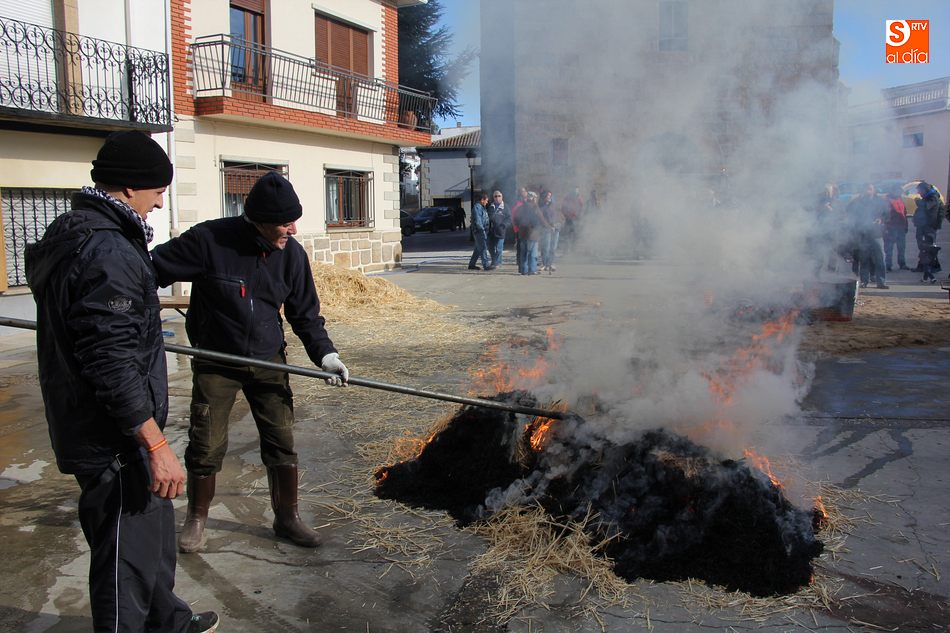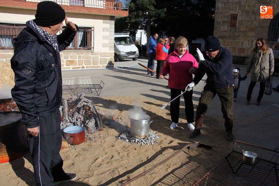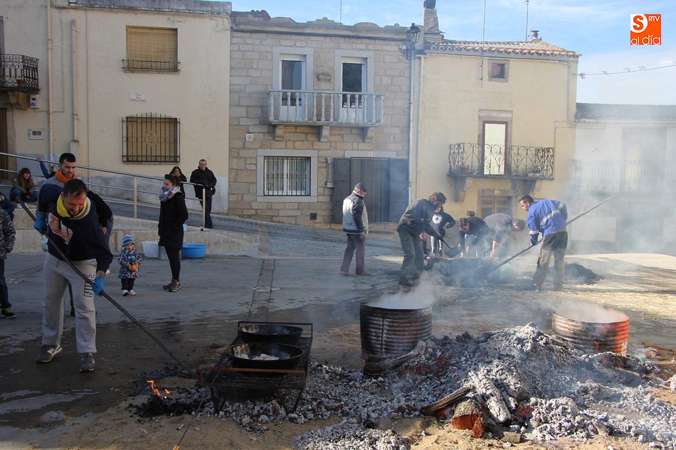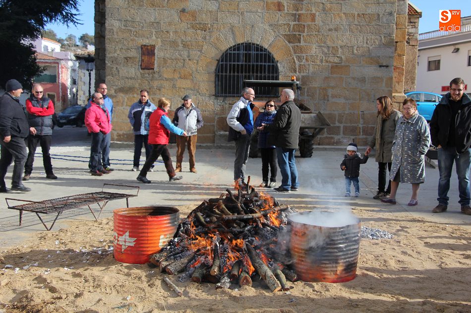 Empezaba la jornada preparando un buen fuego y los utensilios que se iban a utilizar para la matanza, aprovechando las brasas para hacer un café de puchero que se acompañó de mantecados, perrunillas y aguardiente, y fue repartido entre los corrillos de la plaza.