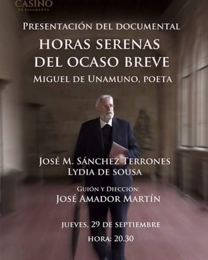 'Horas serenas del ocaso breve' es el título del documental sobre Miguel de Unamuno, que se estrenará el jueves 29 de septiembre, a las 20.30 horas, en el Casino de Salamanca.
