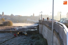 Una fuerte colisión entre dos coches en el cruce de entrada al puente de Alba de Tormes ha concluido con la salida de la calazada de uno de ellos, un Citroën Xsara, que según primeras informaciones procedía de la carretera que une la villa ducal con Fresno Alhándiga. El vehículo, por causas que se desconocen, no respetó las señales de tráfico, embistió a un Opel Astra y finalizó en una parcela junto al río Tormes a su paso por este municipio.