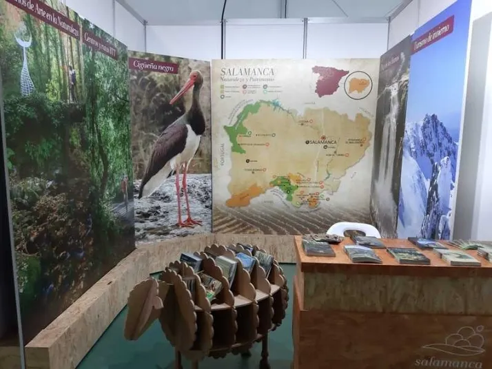 El espacio de participación de la Diputación de Salamanca en FIO 2022 también es aprovechado, junto a la promoción del turismo ornitológico en la provincia, para dar a conocer las rutas de senderos temáticos y de bicicleta de todo terreno.