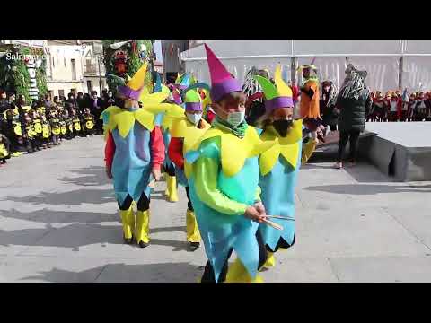Los escolares de Guijuelo han retomado esta mañana el divertido desfile de carnaval que tras un año de ausencia por la pandemia se ha vuelto a celebrar en la plaza Mayor de la localidad. Procedentes de los colegios Miguel de Cervantes y Filiberto Villalobos, los alumnos de Infantil y Primaria se han dado cita en el ágora donde les esperaba el alcalde, Roberto Martín, y los concejales María Jesús Moro y Carlos Arasa.