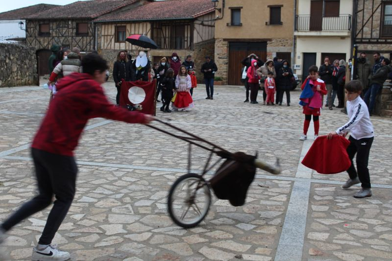 Villanueva del Conde ha celebrado esta tarde una nueva edicíon de la tradicional fiesta la Tora del Carnaval. Se trata de una antigua propuesta que mezcla espectáculo taurino con una fiesta de disfraces que representan una divertida corrida de toros en tono de comedia con los vecinos disfrados de toreros, guardias civiles, médicos o el cura del pueblo.