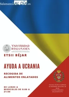 La Escuela de ingeniería de Béjar está realizando una recogida de alimentos que serán enviados hasta Ucrania en camiones, a través de una empresa que esta gestionando el desplazamiento desde Salamanca. La iniciativa ha surgido de los propios alumnos del centro universitario, según explica el director, Alejandro Reveriego: “El domingo me plantearon la posibilidad y desde la dirección dimos luz verde y coordinamos esta acción de ayuda”.