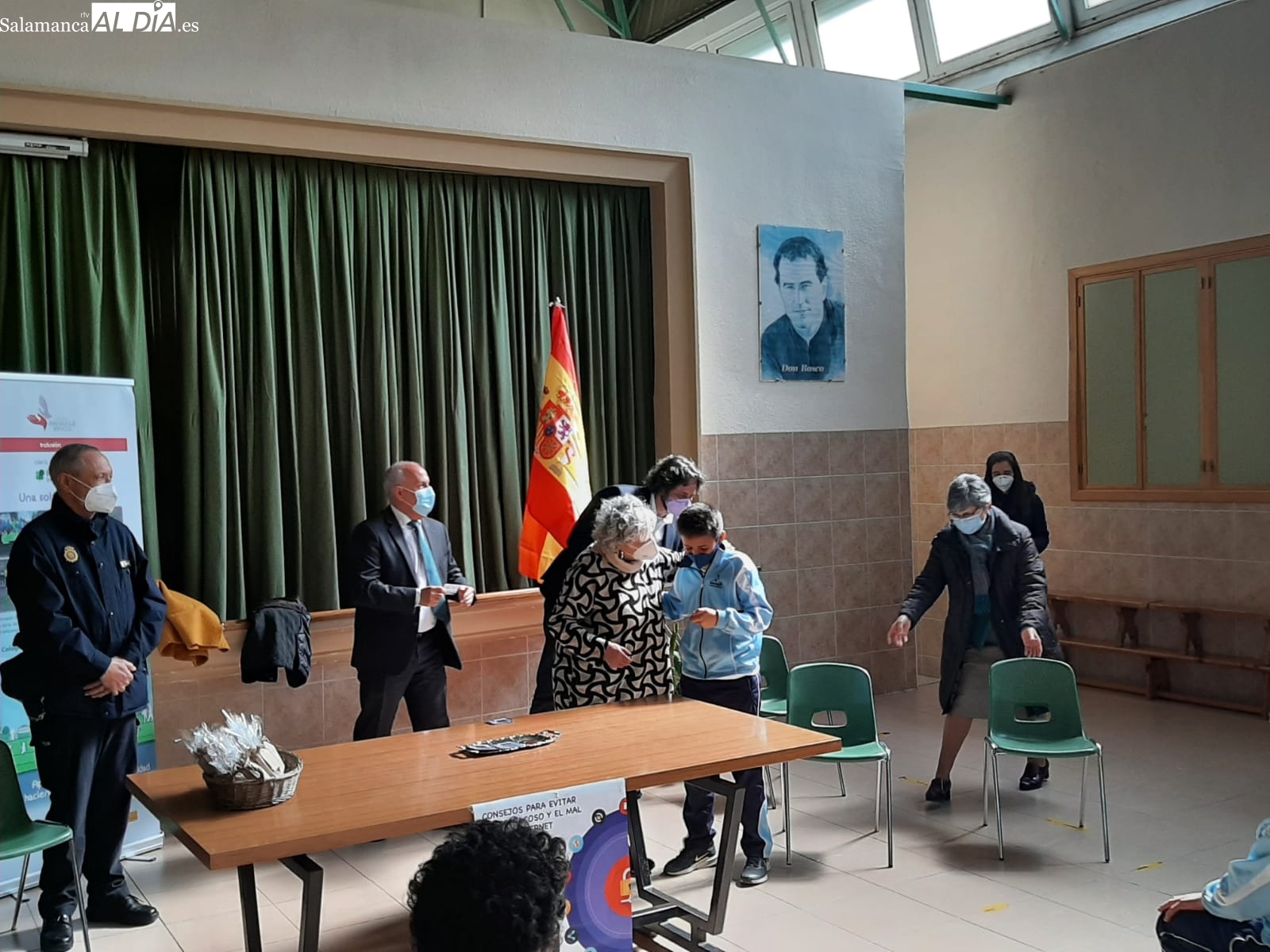 La subdelegada del Gobierno en Salamanca, Encarnación Pérez, ha sido la encargada de hacer entrega de los mismos junto al alcalde de Béjar, Antonio Cámara; el director provincial de Educación, Ángel Miguel Morín; el comisario jefe provincial accidental, Manuel Luis Veiga; y el jefe de la Comisaría de Béjar, inspector jefe Antonio Javier Martín.