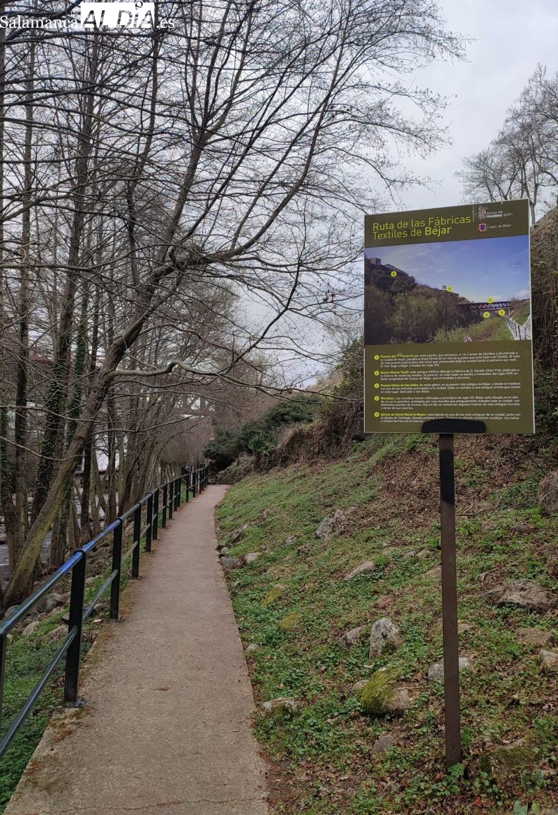 Para acceder a la “ruta de las fábricas textiles” disponemos de dos opciones. Una de ellas es a través de un sendero, a unos 100 metros del casco urbano, en la denominada “Cuesta de los perros”. A través de este camino llegaremos al “Puente de los Izares” que nos pasa al otro lado del río, parte por la que discurrirá el resto del paseo. Este puente fue originariamente de madera, siendo hoy en día de cemento. La segunda forma de llegar al inicio es a través de una entrada que se encuentra en la carretera SA-220, que une Béjar y Ciudad Rodrigo, a unos cuatrocientos metros tras salir de la ciudad textil.