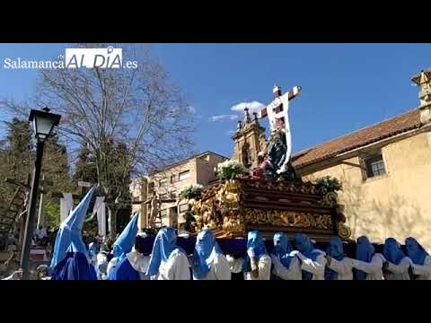 La Cofradía de la Vera Cruz es la protagonista del inicio de la tarde de Viernes Santo en Salamanca con el Acto del Descendimiento que ha tenido lugar en el Humilladero del parque San Francisco con las imágenes religiosas de Cristo Nuestro Bien (Pedro Hernández, 1615) y Dimas y Gestas (Antonio de Paz, 1615) y el paso de Santo Sepulcro (anónimo, 1678).