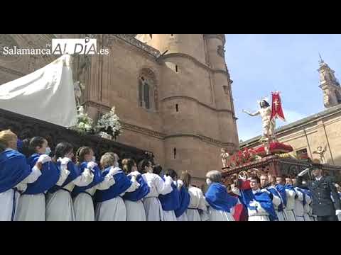 El público ha respondido este domingo con la misma atención de los últimos días con miles de asistentes congregados frente al principal templo salmantino. El final de la Semana Santa ha vuelto a emocionar a salmantinos y turistas que han acompañado a los cofrades en la última procesión del calendario.