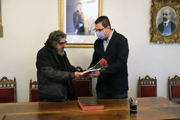 Dos actividades sirvieron de lujoso aperitivo para los amantes de las letras como anticipo a este 23 de abril. Ante del comienzo de estas, algunos miembros de la directiva del Casino junto con su presidente, Iván Parro Fernández, recibieron al protagonista en su salón de reuniones, le invitaron a firmar en su libro de honor y le hicieron entrega de una rosa y un ejemplar de Casino Obrero de Béjar (1881-2006). Instrucción, moralidad y recreo, y Jambrina pudo además conocer algunas dependencias del emblemático edificio como la espléndida biblioteca y el legado Hernández Girbal.