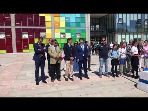 El presidente de la Junta de Castilla y León, Alfonso Fernández Mañueco, no ha querido perderse, este lunes, el acto escolar con motivo del Día de Europa.