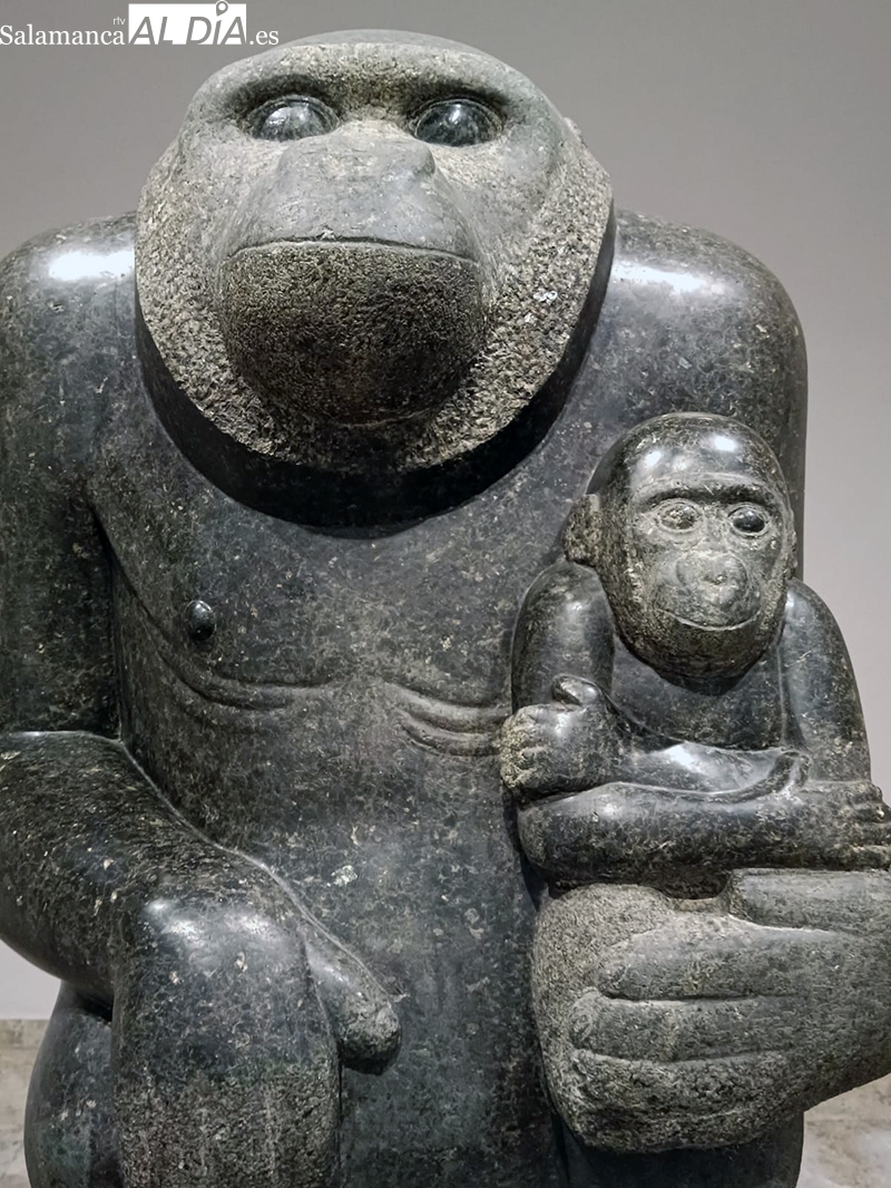 En la primera planta de este museo nos vamos a tropezar con las obras de mayor tamaño y peso, algunas sobrepasando varias toneladas. Se trata además de esculturas que pertenecen a la época final de la vida de Hernández, a los últimos años de su carrera. “Yo destacaría aquí el gamo, de 1915, una obra temprana donde vemos como estiliza las formas, ese pulido tan liso y brillante, sin perder el alma que proyecta cada obra. Pero también son destacables las maternidades de simios, donde se nota influencia del art deco y quizás estos orangutanes son piezas muy personales de su estilo” comenta Ana mientras paseamos junto a estos grandes bloques de piedra que nos dan una idea de lo laborioso del proceso que utilizaba Mateo Hernández: la talla directa.