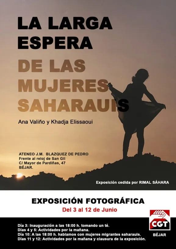 Desde CGT Béjar se están preparando varias actividades relacionadas con la situación actual de la mujer saharaui y para ello se cuenta “con este recorrido fotográfico de la mano de Ana Valiño y Khadja Elissaoui que nos acerca a sus vidas, a sus días y a sus miradas” indican desde el sindicato.