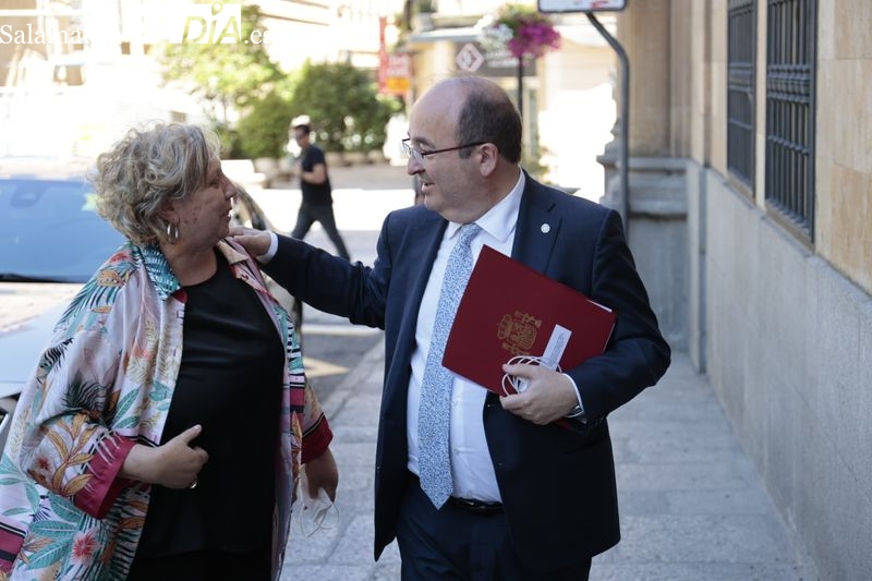 El ministro de Cultura, Miguel Iceta, y el secretario general de UGT, Pepe Álvarez, han visitado este miércoles la exposición 'Largo Caballero y el protagonismo de la clase trabajadora' que acoge el Centro Documental de la Memoria Histórica.