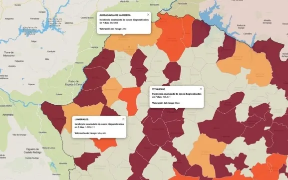 Respecto a contagios entre mayores de 60 años en las poblaciones de más de 1.000 habitantes, Lumbrales se coloca a la cabeza con nueve positivos, seguido de Vitigudino con ocho y de Aldeadávila con cuatro.