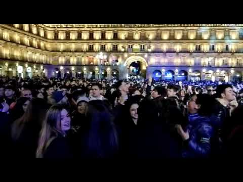 La Plaza Mayor de Salamanca ha estallado en júbilo con miles de jóvenes congregados para celebrar la Nochevieja Universitaria con la que han despedido 2022. Las tradicionales gominolas, los besos, los abrazos, la música.... el ágora era una explosión de alegría en el adiós del año universitario y la bienvenida de 2023.