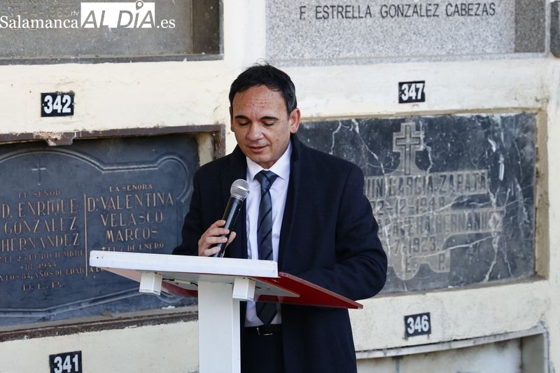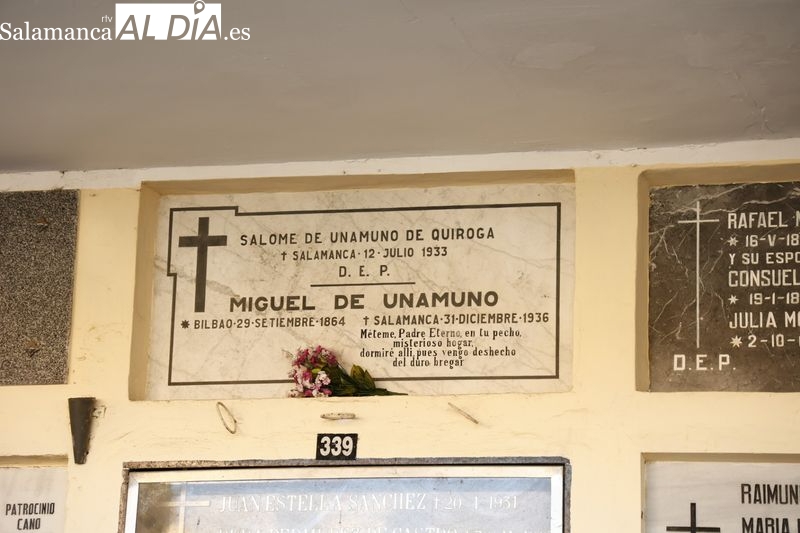 Como cada 31 de diciembre, y coincidiendo con el aniversario del fallecimiento de Miguel de Unamuno, la Asociación Salamanca Memoria y Justicia ha celebrado su tradicional homenaje al escritor y exrector de la Universidad de Salamanca en el cementerio de San Carlos Borromeo, donde descansan sus restos.
