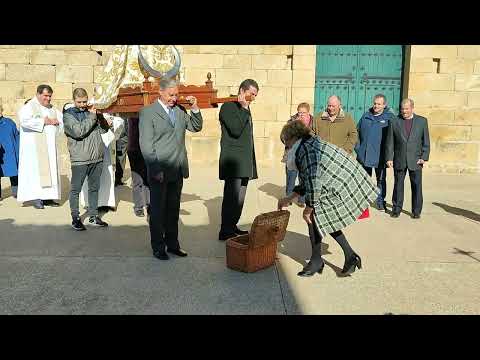 Finaliza la eucaristía, ceremonia amenizada por los sones de la gaita y el tamboril de Juan José Bautista, la Virgen de la Paz salía en procesión por su recorrido habitual y a hombros de los vecinos, acto al que no faltaron distintas autoridades locales con el alcalde, Manuel Alonso, al frente. Con la llegada de La Candelaria a la Plaza del pueblo, Luci Gorjón, vecina de la localidad, procedía a dar suelta a un grupo de palomas en señal de deseo de que el mundo alcance la paz en los distintos conflictos que amenazan a los pueblos.