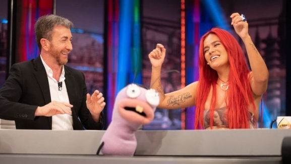 El programa de televisión El Hormiguero arrasó anoche con 2.989.000 seguidores y un 19,7%, su máxima cuota del año y a +12,8 puntos de su principal competidor. De hecho, es la emisión con más espectadores únicos: 6.076.000. El motivo fue la entrevista de Pablo Motos con Karol G, la cantante que lleva más de 70 millones de visualizaciones en Youtube con “TQG”, su canción con Shakira.