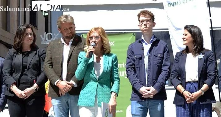Mientras entre el público estaba el actual consejero de Cultura, Deportes y Turismo, el bejarano Gonzalo Santonja, intervenía el procurador regional de VOX, Javier Teira, que ha defendido que “con VOX hay esperanzas”. Por su parte, el Diputado nacional, Rodrigo Jiménez, relataba que, en su opinión, apoyar a un candidato del PP “es apoyar que las niñas de 16 años puedan abortar sin autorización de sus padres, apoyar la agenda 2030 en la que no tendrás nada y serás feliz, es apoyar la ley trans” y que apoyar a un candidato del PSOE “es apoyar a Otegui, apoyar a los sediciosos repitan el 1 de octubre, apoyar a los malversadores como en el caso del tito Berni y apoyar a todos los enemigos de España”.