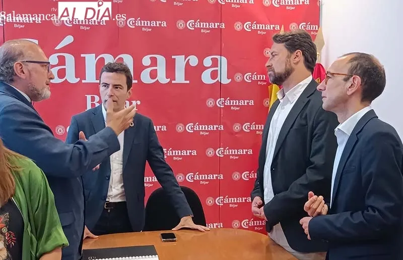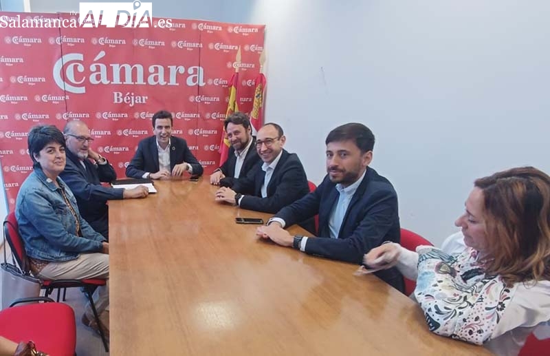 Este ha sido el caso del PSOE, con el candidato a la alcaldía Antonio Cámara a la cabeza, que ha mantenido una reunión con representantes de la Cámara de Comercio e Industria de Béjar. A este encuentro han acudido también Pedro Casares, Secretario federal PSOE de política económica y transformación digital junto con el secretario provincial David Serrada.