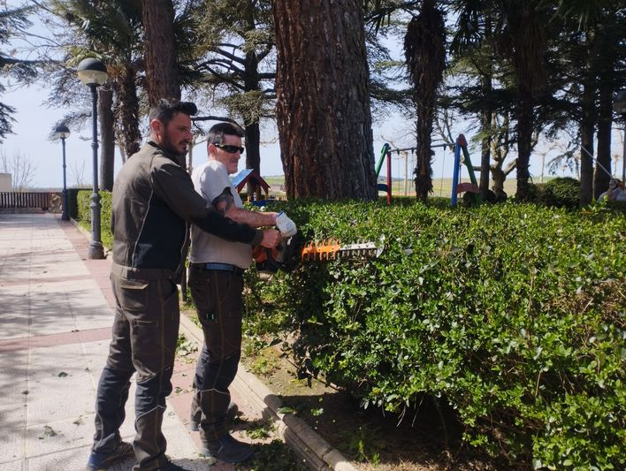 Las 16 personas participantes, 8 de cada municipio, han comenzado a dar forma a los jardines que están creando tanto en Los Cisnes (Terradillos) como en el Castillo de los Duques de Alba, en Alba de Tormes. A su vez se han ido realizando prácticas de poda, tanto de árboles como de setos, así como de siega de césped con distintos tipos de maquinaria, para lograr una formación integral en todos los aspectos que abarca la jardinería, así como que los participantes adquieran experiencia en el manejo de todo tipo de maquinaria.