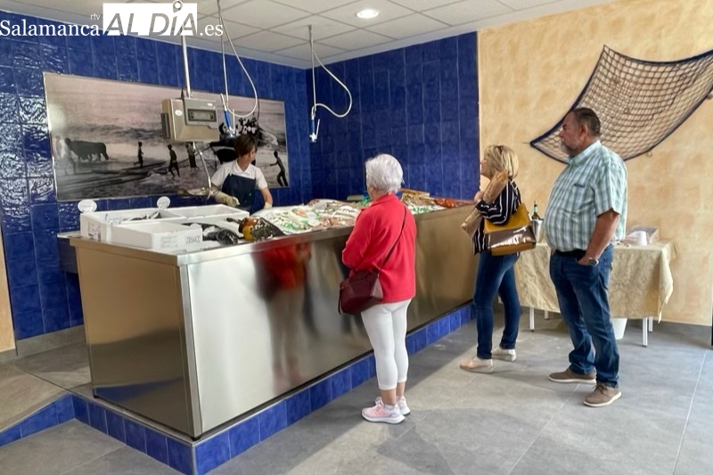 Mercedes Miguel Arroyo es la más que ilusionada y nerviosa gerente de esta nueva pescadería, que desde este jueves ofrece a todos sus clientes el pescado fresco de mayor calidad, traído cada día desde las lonjas gallegas, algo que se complementa con un cuidado servicio a cada cliente, algo que no solo ofrece la preparación del pescado y los encargos como cada uno quiera, sino que también ofrece el poder dejar en la tienda su compra para recogerla antes de marcharse, algo de lo que principalmente se benefician aquellos que conocen a Mercedes en su venta ambulante o las pescaderías regentadas en la provincia de Ávila, algo que ahora se hace realidad en Peñaranda cerrando una llamativa etapa que ahora cuenta con un lugar definido y físico en la ciudad.