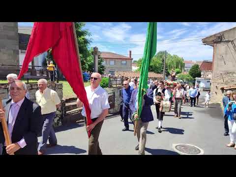 Finalizada la homilía oficiada por el arcipreste de La Ribera, Jean Claud, San Antonio salía en procesión presidida por los mayordomos y hermanos Feli y Miguel Vicente, y amenizada por los sones de la gaita y el tamboril de Jorge Sousa. Encabezaba la procesión la imagen de San Antonio de mayor tamaño, seguida al final por otra del Santo más pequeña y que portaron las mujeres bajo el repique de campanas y el canto de ‘Los pajaritos de San Antonio’.