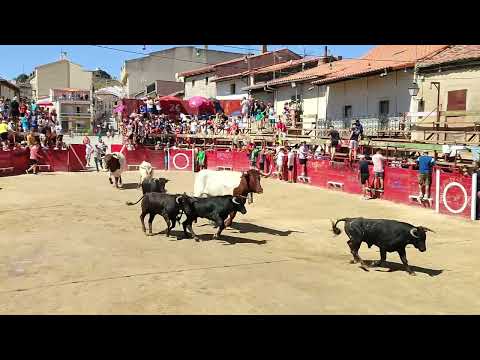 Rápido encierro el que se ha desarrollado este lunes en Vilvestre, festejo en el que se corrieron cuatro novillos de la ganadería de Hermanos Cañero, negros y de desigual presentación, que entraron agrupados a la plaza y unos minutos después en toriles, dispuestos para la lidia esta tarde. Finalizado el encierro, se soltaría una vaquilla para los aficionados.