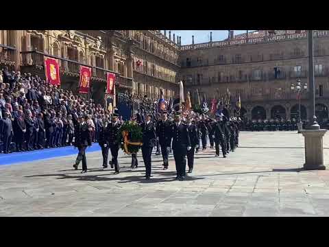 La Plaza Mayor de Salamanca acogía este miércoles 20 de septiembre el acto central de celebración del Día de la Policía, que incluía la entrega de condecoraciones, el homenaje a los caídos en acto de servicio y la formación de unidades de la propia Policía Nacional.
