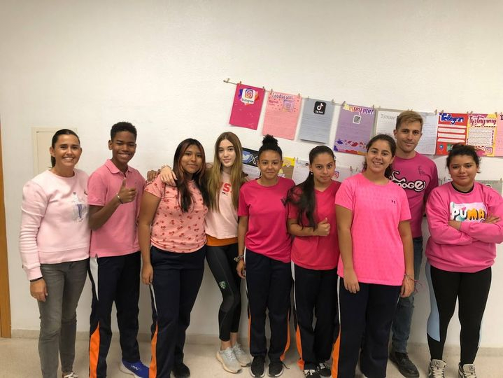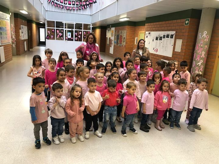 Además, todos los alumnos llevaron una prenda de color rosa a clase y participaron en la lectura del manifiesto con muestras de apoyo a los enfermos de cáncer.