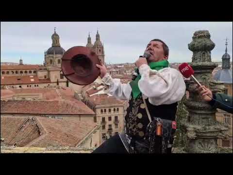 Ángel Rufino de Haro 'El Mariquelo' ha cumplido una año más, y ya van 37, con la tradición de la víspera de Todos Los Santos subiendo a la torre de la Catedral Nueva de Salamanca, vestido de charro con su gaita y tamboril. Este año, además, el acto iba dedicado a la asociacion ELA Castilla y León y la Asociación del Parkinson.