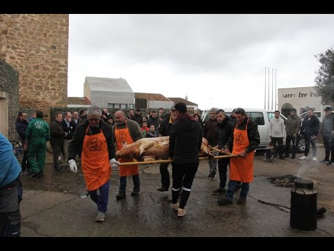 Una vez limpio, el animal fue trasladado a la Plaza donde se inició la tarea del despiece, en la que participaron un grupo de vecinos de todas las edades, entre ellos Manuel Agudo y José Martín González, los cuales ejercieron de matanceros mayores en esta edición. Las distintas piezas de carne fueron colgadas de los varales colocados en los soportales de la Casa Consistorial, ante la atenta mirada del público, mayores, jóvenes y niños.