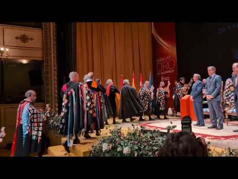 La ceremonia de entrega de las Medallas de Oro de Salamanca 2023 ha estado presentada por el que fuera portero y entrenador de la Unión Deportiva Salamanca, Jorge D’Alessandro, y ha contado con las actuaciones de la Tuna Universitaria de Salamanca y de la Tuna de Derecho y de Edwing Vladimir y Ángela Ispierto. Estos últimos han interpretado ‘Paraíso de la Inquietud’, tema dedicado a Salamanca y compuesto expresamente para esta gala con música de María del Carmen Collado Álvarez.