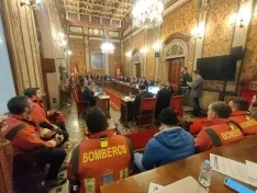 Los bomberos asisten al pleno de la Diputación y protestan a las puertas del edificio