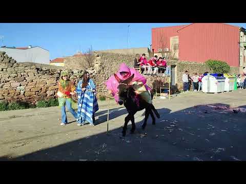 Después de una larga noche, en la que -mal que le pese a alguien- no faltó la tradicional hoguera en la parte trasera de la plaza de toros, a media mañana los quintos 2024 hacían acto de presencia en las Cuatro Calles con el intento de recaudar algo para la fiesta, para seguir con la comida y la rotura de cántaras a lomos de Manuto, una burra de lo más dócil, pero que al final acabo resistiéndose a pasar por debajo de la cuerda y la cántara llena de sorpresas.