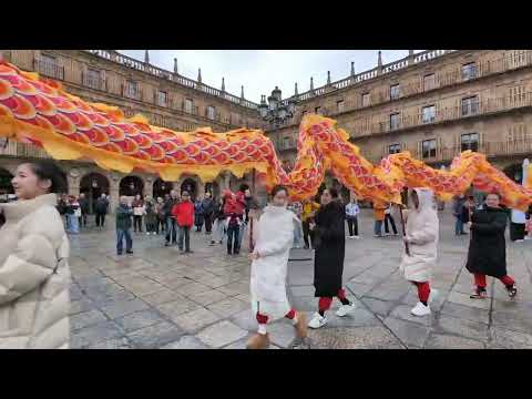 Salamanca celebra durante estos días la llegada del Año Nuevo Chino con distintas actividades, como el pasacalles 'Baile del Dragón y Leones', del que se ha podido disfrutar este jueves por calles del centro de Salamanca. Un acto algo deslucido por el mal tiempo, que volverá a repetirse el sábado, a las 12:30, desde la plaza Concilio de Trento y recorriendo la calle Palominos, Plaza de Anaya, Patio de Escuelas, calle Compañía, calle Prior para finalizar en la Plaza Mayor.