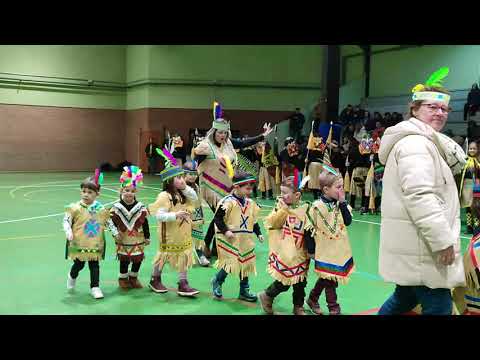 Así que los alumnos acudían por clase desde las aulas al pabellón, lugar donde les aguardaban padres, madres, abuelos y demás familiares, que pudieron disfrutar durante una hora de un bullicioso desfile animado por la charanga La Escala 2.0, que como el anterior era contratada por la Asociación de Madres y Padres de Alumnos.