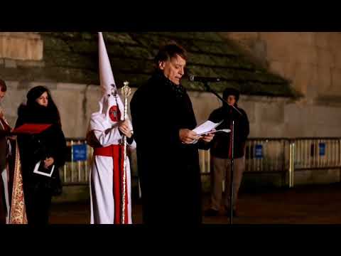 El presidente de la Junta y el alcalde de Salamanca participan en el acto previo a la salida en procesión del Cristo Yacente de la Misericordia y de la Agonía Redentora.