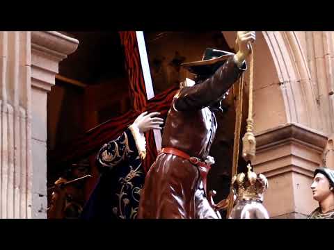 La Ilustre y Venerable Congregación de Nuestro Padre Jesús Nazareno y Santo Entierro ha partido este Viernes Santo a la hora prevista de la iglesia de San Julián y Santa Basilisa. Pero cuando la procesión llegaba la plaza del Mercado, la lluvia y el granizo han hecho acto de presencia y han obligado a tapar los pasos, resguardarse en los soportarles de la Plaza Mayor y regresar, una vez que mejoraron a las condiciones, a la iglesia.