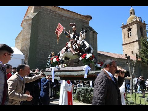 Así pues, este martes tenían lugar los actos religiosos en honor al 'cazador de dragones', misa, procesión y ofertorio concelebrados por los distintos sacerdotes del arciprestazgo del Abadengo y que tenían a la Corporación municipal al frente de la mayordomía, pues fueron el alcalde, Jesús Martín, y el teniente de alcalde, Daniel Arroyo, los encargados de portar las varas de mayordomos.