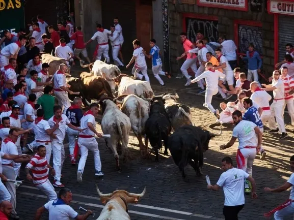 El segundo encierro de San Fermín 2024 en Pamplona se ha prolongado durante 2 minutos y 40 segundos, el tiempo empleado por los toso de Cebada Gago en recorrer los 850 metros que van desde la cuesta de Santo Domingo a la Plaza de Toros.