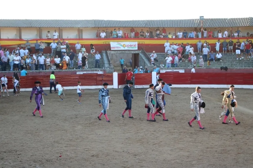 Despropósito. Esa es la palabra que define a un festejo sin banda de música y que hizo al público sonar los clarines para anunciar los cambios de tercio, o cantar el ‘Viva España’ de Manolo Escobar para animar de alguna manera al joven rejoneador en el toreo a caballo. Además, en los dos primeros toros de a pie solo salió un picador, aunque de por sí a los toritos de Albarrán le había sobrado con medio picador, es decir con marcar el puyazo les habría bastado, pero tanto El Payo como Aguado no lo vieron así y dejaron en sus dos segundos, los de más clase de la tarde, dos largas varas que acabaron con los de Badajoz tras los primeros muletazos.