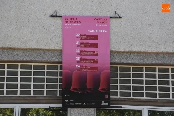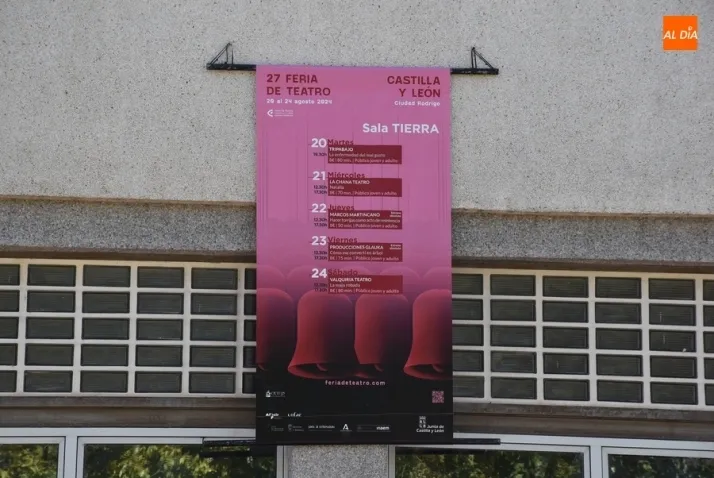 Lo que también se ha empezado a hacer estos días, como se puede comprobar en la imagen que incluye la galería perteneciente a la denominada Sala Tierra (el gimnasio del IES Tierra de Ciudad Rodrigo), es colgar las lonas que informan en cada espacio escénico de la agenda de espectáculos que se desarrollarán en los mismos.
