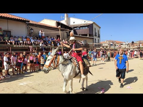 Como manda la tradición, los jóvenes montaron a lomos de burros para intentar romper los cántaros, acto al que siguió el singular baile de la rosca de quintos