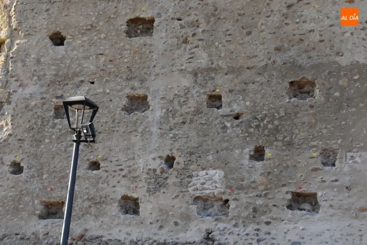 Todos aquellos que desde el mes de julio están transitando por la Cuesta de Santiago de Ciudad Rodrigo, en su tramo de confluencia con la Puerta de Santiago, están pudiendo contemplar cómo el lienzo de la muralla de ese tramo se parece bastante a un ‘queso emmental’, al presentar múltiples huecos producto de la retirada de otras tantas piedras.