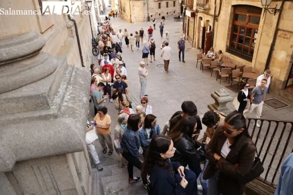 Un año más, la tradicional jornada de puertas abiertas que permite acceder gratis a una veintena de espacios culturales e institucionales de forma gratuita está resultando un éxito. Prueba de ello eran las colas que se podían ver esta mañana junto a las Torres de la Clerecia (Scala Coeli), las terrazas de la Catedral (Ieronimus) y la Casa Lis.