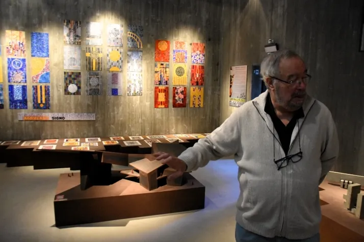 Todo en un Museo cuya concepción y forma sorprende al visitante y que se ancla, pieza perfecta, como lo hacen las sólidas, angulares piezas de un artista que trabajó con el plano la materia de la originalidad y de la perspectiva. Un Museo que se abre a las muestras temporales en una ciudad que adolece de falta de espacios expositivos y no de artistas que tenemos el deber de cuidar y el placer de conocer. Un Museo al que se invita al amigo a la visita afectuosa y al que el amigo responde con un estallido de color, geometría de su arte. Diálogo fecundo de amistad generosa y recuerdo entrañable hasta el mes de octubre en Doñinos, en el Museo del Hormigón.