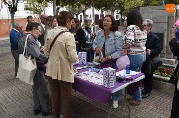 Con motivo de la aparición este sábado en el calendario del Día Mundial del Alzheimer, la Asociación de Familiares de Enfermos de Alzheimer y otras Demencias de Ciudad Rodrigo (AFAD) tuvo instalada durante la mañana sabatina una mesa informativa en las inmediaciones del Monumento al Garrochista, en la actual estuvieron repartiendo información, así como lazos morados distintivos de la enfermedad.