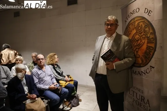 El salón de actos de la biblioteca de la Casa de las Conchas se quedó pequeño para albergar la esperada presentación de la novela “Mil ojos esconde la noche. La ciudad sin luz” a cargo de su autor, el famoso Juan Manuel de Prada, quien conversó con SALAMANCArtv AL DÍA en esta entrevista. Con un público entusiasmado, de Prada fue desgranando el por qué de su obra, sus inquietudes acerca del París de los años 40, los personajes de su novela y su relación personal con Salamanca, donde estudió y escribió sus primeros libros. El acto, organizado por el Ateneo de Salamanca, resultó todo un éxito.