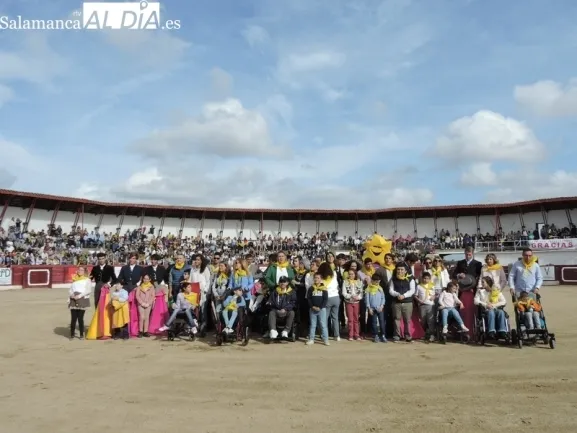 Tras el paseíllo formal, desde la Puerta Grande se inició otro con todos los niños de la Asociación, que fueron recibidos con el público puesto en pie. Ya habían triunfado antes de empezar el espectáculo. Entre ellos caminaba, con lágrimas en los ojos, Domingo. La persona. Atrás quedó López Chaves, el torero de valor sin límites para dar paso a este ledesmino de corazón gigante. A su lado, sin poder articular casi palabra, la presidenta de AERSCYL, Cristina Díaz Del Cerro, agradeció micrófono en mano a todos los presentes por su aportación a la causa, así como a todos los actuantes por su altruista colaboración.