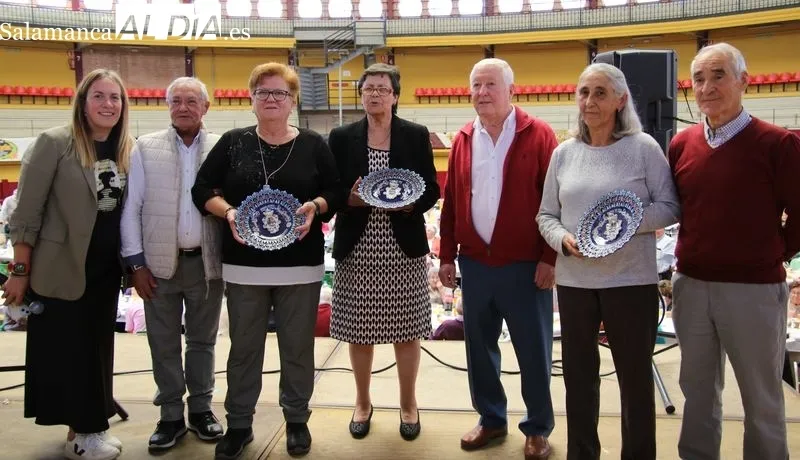 El concejal Manuel Juanes y la edil Lur Vaquero han hecho entrega de un plato de filigrana a los matrimonios, y recibieron también la enhorabuena de parte de la alcaldesa de Alba de Tormes, Concepción Miguélez.